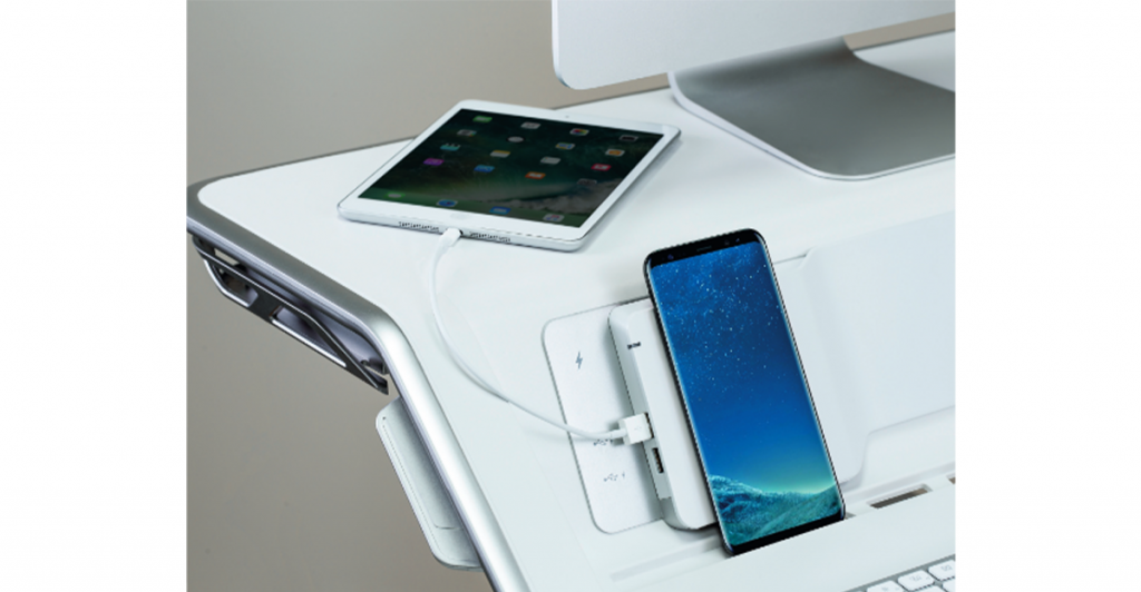 l design design a cascata aiuta a mantenere tutti gli accessori essenziali a portata di mano e supporta la tecnologia grazie al facile accesso ai cavi di ricarica.